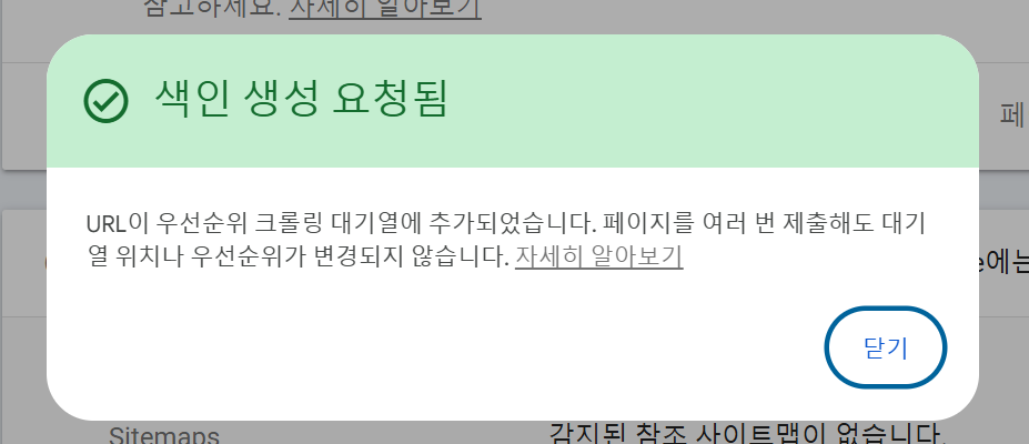 - 구글 서치콘솔의 URL 검사에 복사한 주소 붙여넣기 하세요.