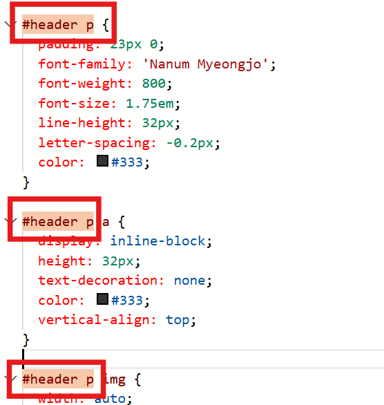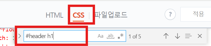 - CSS에서 컨트롤 +f 누르고 #header h1 입력합니다.
