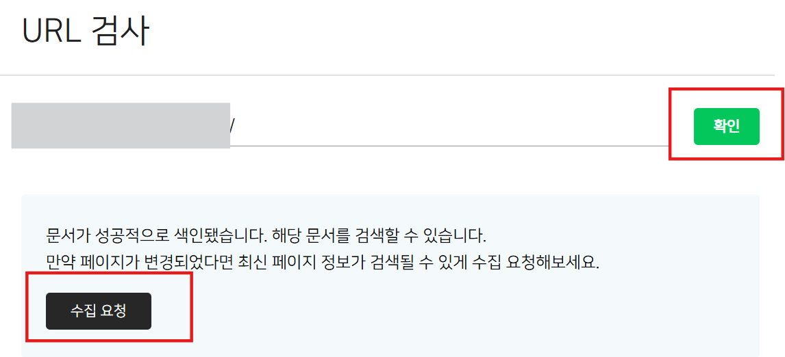 - URL검사 - 확인- 수집요청을 누릅니다.