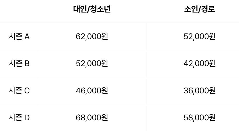시즌별 입장료가 달라지기 때문에 시즌별 기간을 미리 확인해보세요.