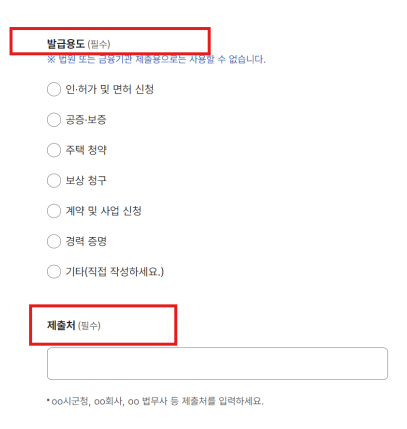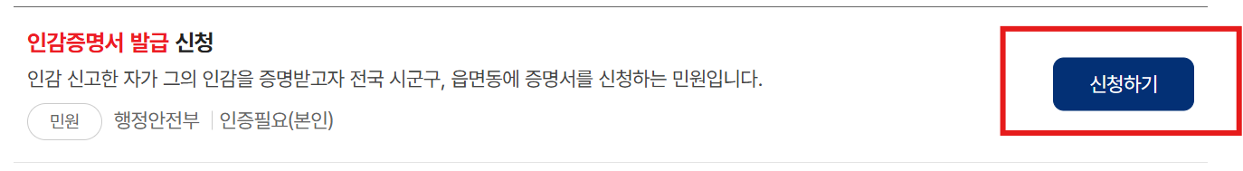 - 발급 가능 서류: 일반용 인감증명서 중 면허 신청 등을 목적으로 하는 서류의 경우 인터넷 발급이 가능합니다. (부동산 매도용, 자동차 매도용, 금용기관 제출용, 법원 제출용은 제외)