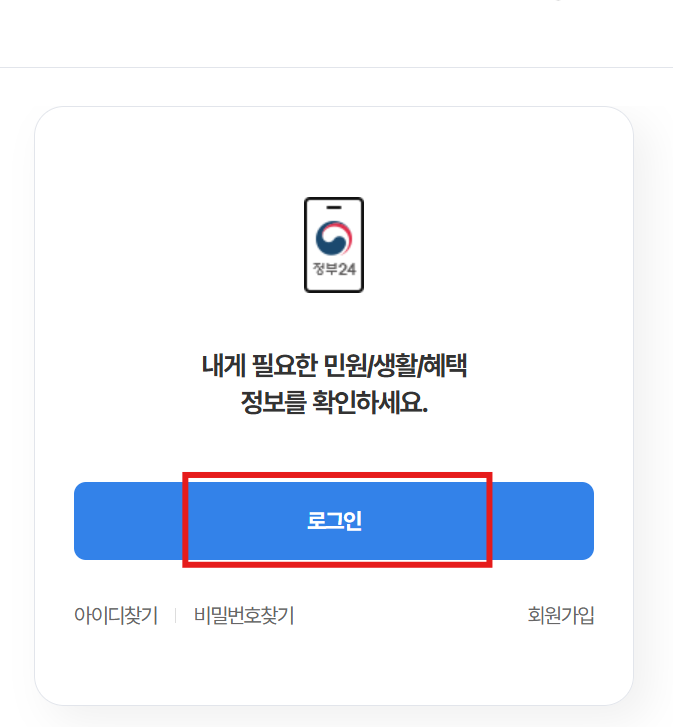 1. 정부24(https://www.gov.kr) 접속 후 공인인증서 인증