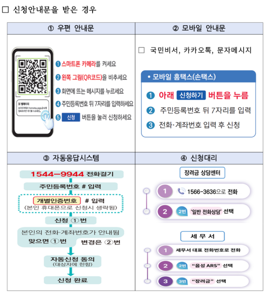 - 모바일안내문: 모바일안내문에서 바로 신청가능. (국민비서, 네이버전자문서, kt알림문자)