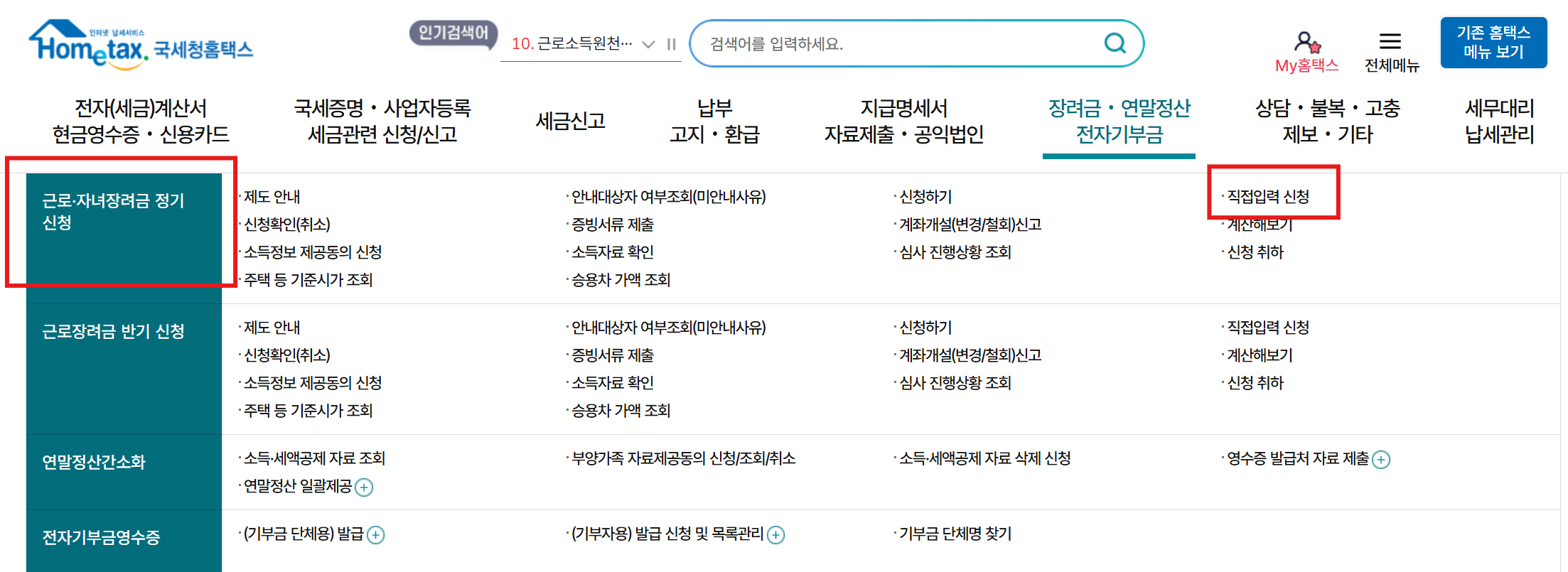 - 근로장려금 정기신청 - 직접입력신청 선택