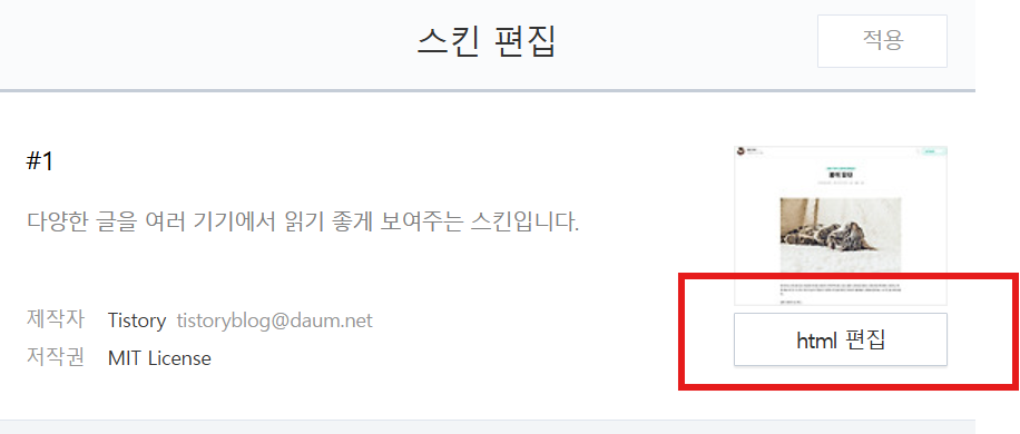 1-5. 티스토리 블로그 - 스킨편집 - html편집으로 들어갑니다.