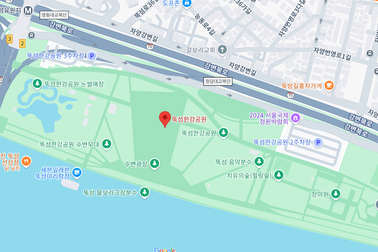 - 7호선 자양역: 1번 출구를 이용하시면 뚝섬한강공원까지 도보로 약 10분 소요됩니다.