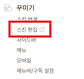 6. 이제 운영중인 블로그에 로그인 한 후 관라자 모드에서 스킨편집으로 들어가세요. (티스토리 기준)