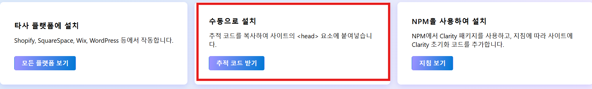 4. 수동으로 설치에서 추적코드 받기를 클릭하세요.